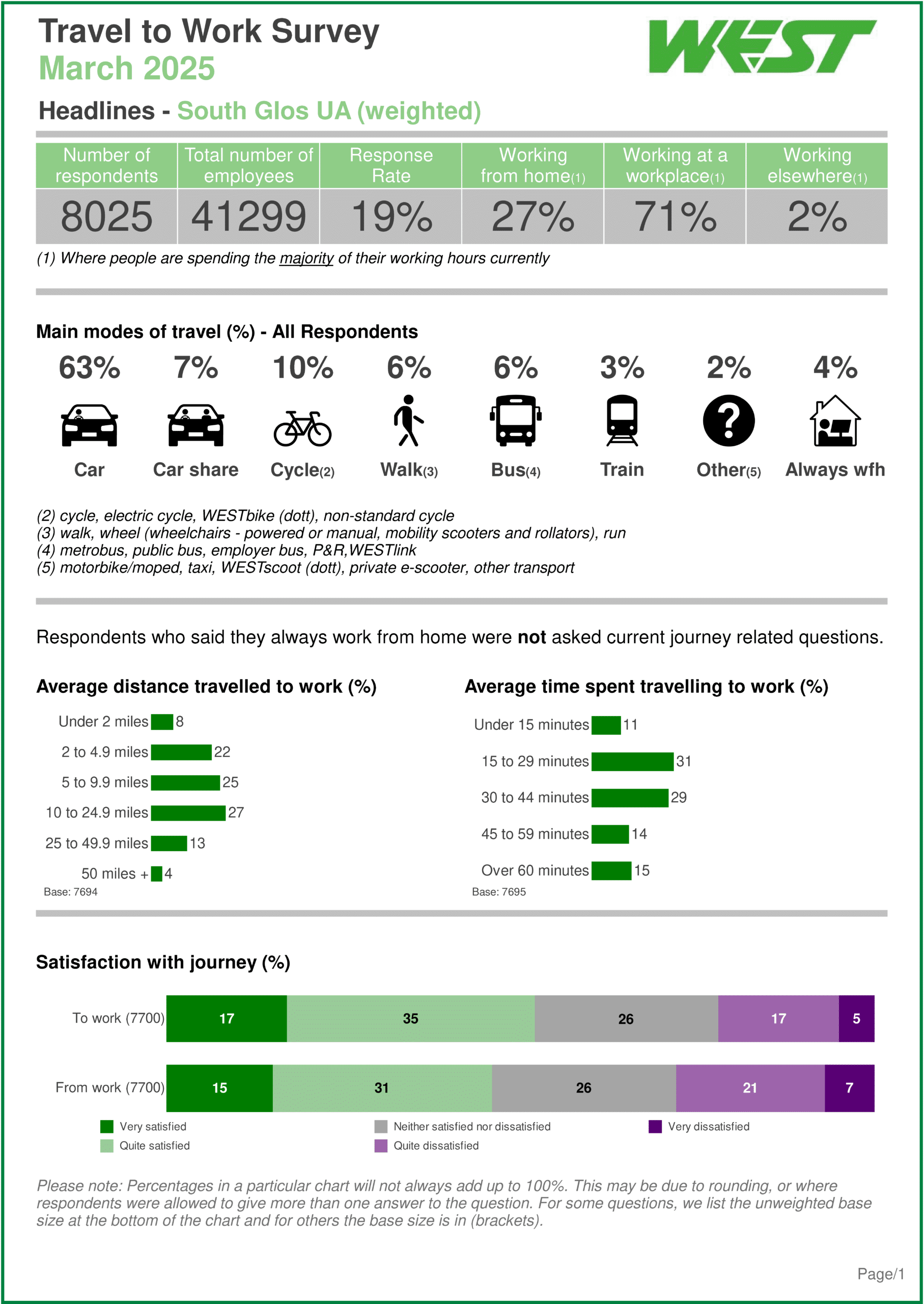 Travel to Work Survey – results by participating UA area