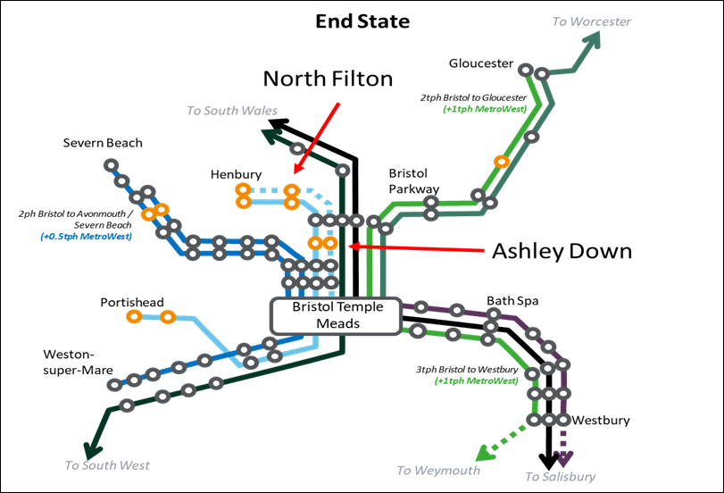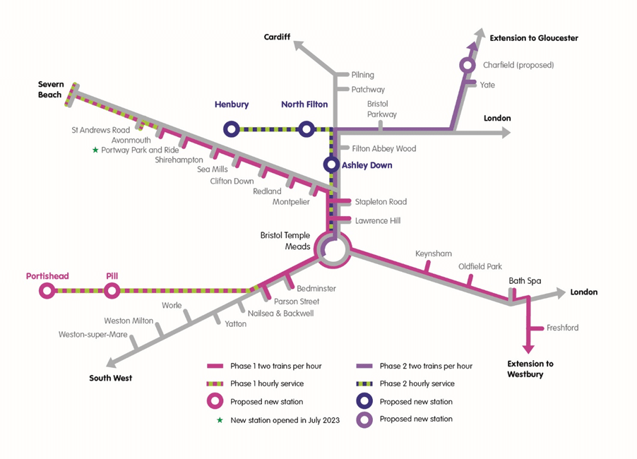 The MetroWest programme is also proposing to introduce a number of new railway services including enhanced services to Severn Beach, Westbury, Gloucester, Henbury and Portishead.