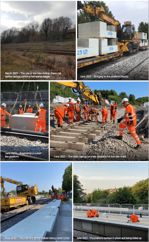The construction of Ashley Down station started in March 2023 and has been carried out by Network Rail and their contractor. Additional work to create a gateway to Ashley Down station on Concorde Way has been carried out by Bristol City Council and their contractors. This includes an accessible route for all to the entrance, two disabled parking bays, and landscaping works with new trees to be planted in the winter.