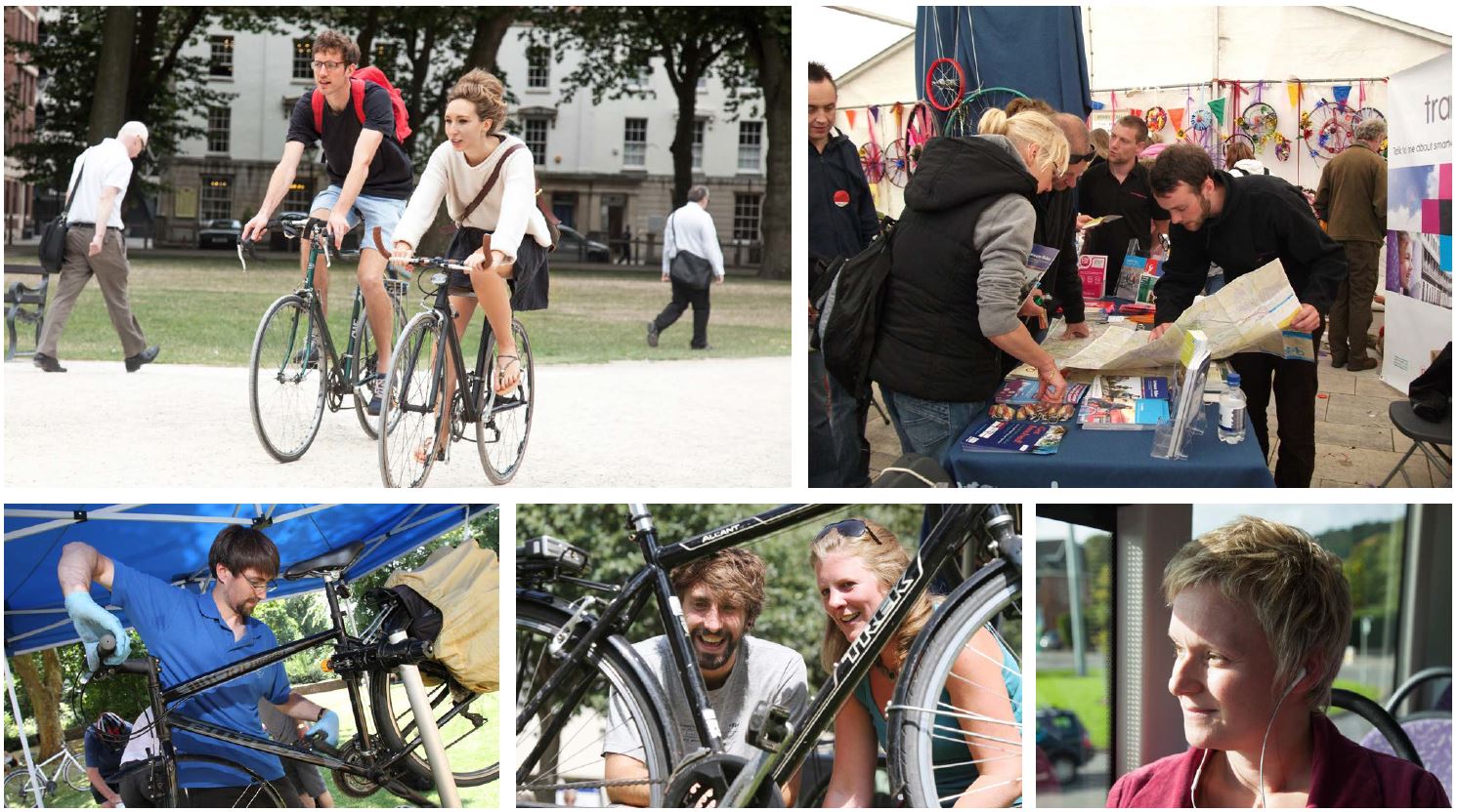 Previous campaigns used photos of people cycling, engaging in discussion over a map, checking their bikes, on the bus...